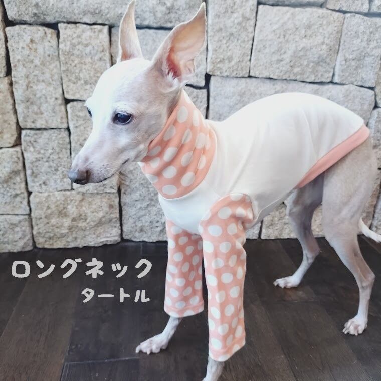 ロングネックはタートルネック仕様となっており、ストレートでも折り返してもドット模様が出ます。