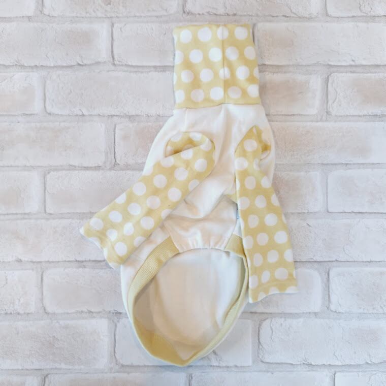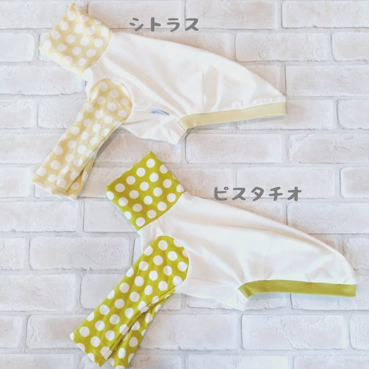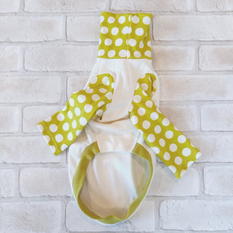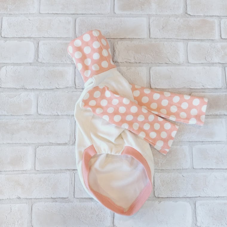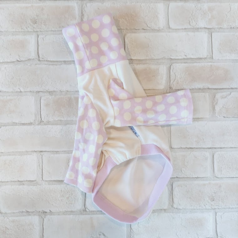 ドット柄×アイボリーのニット生地でバイカラートップスを作りました。