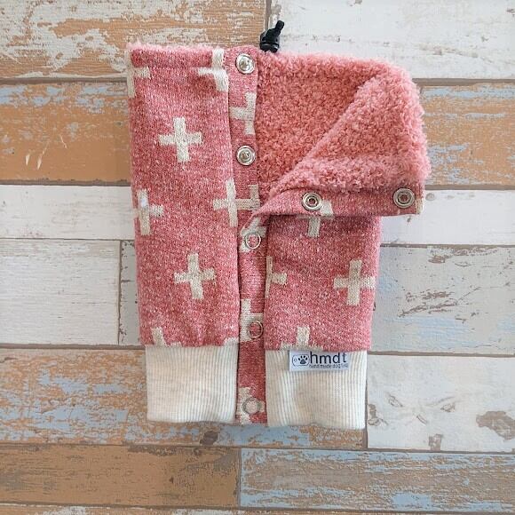 ナチュラル感たっぷりのクロス柄の生地で、スナップボタン留めのネックウォーマーを作りました!