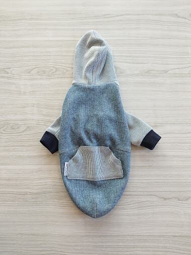 デニム調とヒッコリーのリバーシブル生地で、シンプルな切り替えパーカーを作りました。
