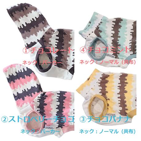 お色は① チョコレート、② ストロベリーチョコ、③ チョコバナナ、④ チョコミント の4色展開です。