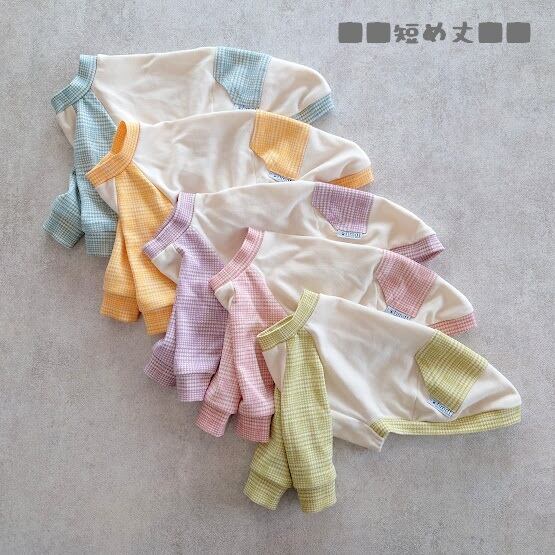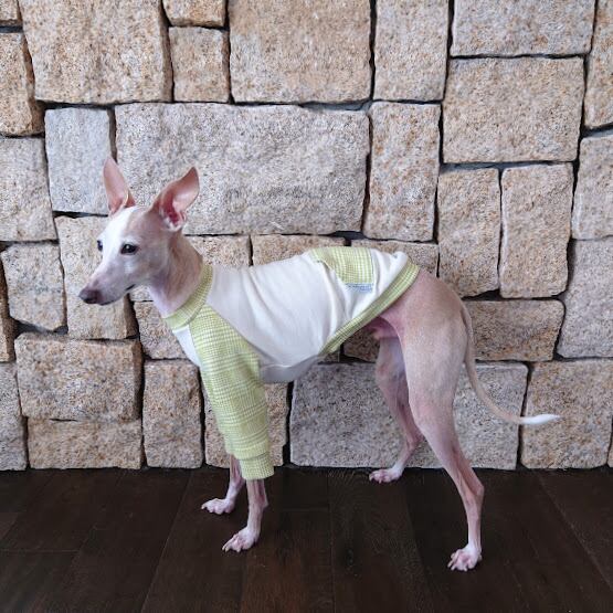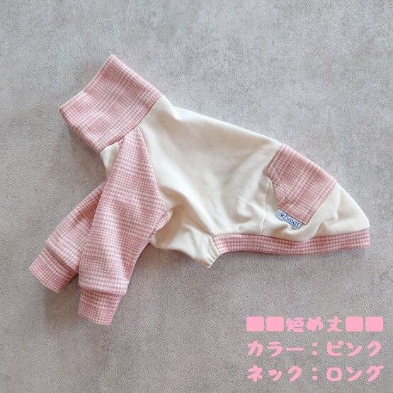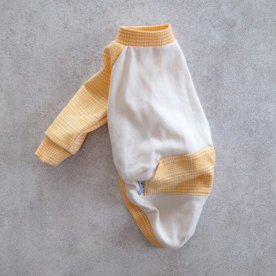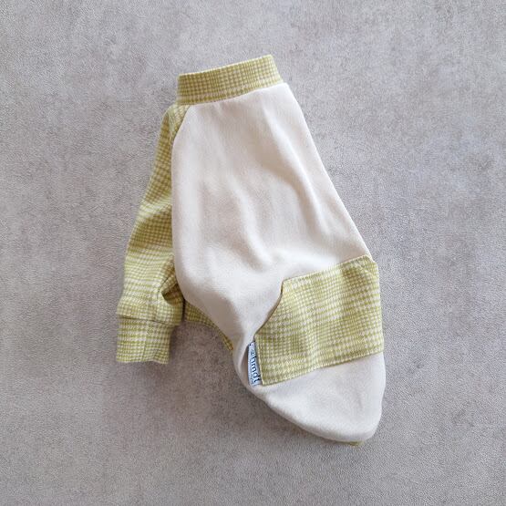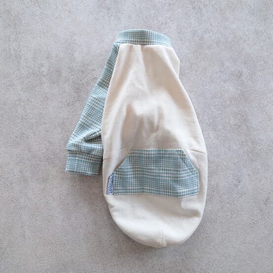 無地の生成りとグレンチェックプリントのミニ裏毛生地で薄手のトレーナーを作りました。