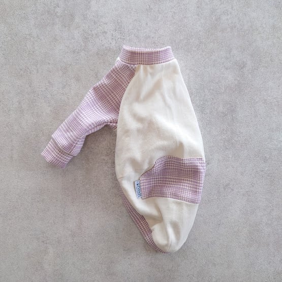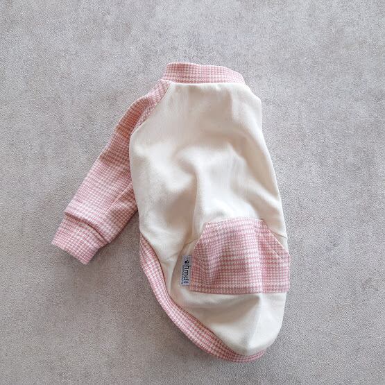 無地の生成りとグレンチェックプリントのミニ裏毛生地で薄手のトレーナーを作りました。
