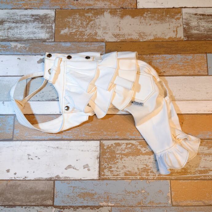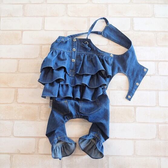 6オンスの薄手で柔らかいデニムで3段フリル&パンツ裾フリル・中央にボタンをあしらい、今回もスパイスが効いて甘くなりすぎない、でもしっかりと女子力高めな仕上がりです。