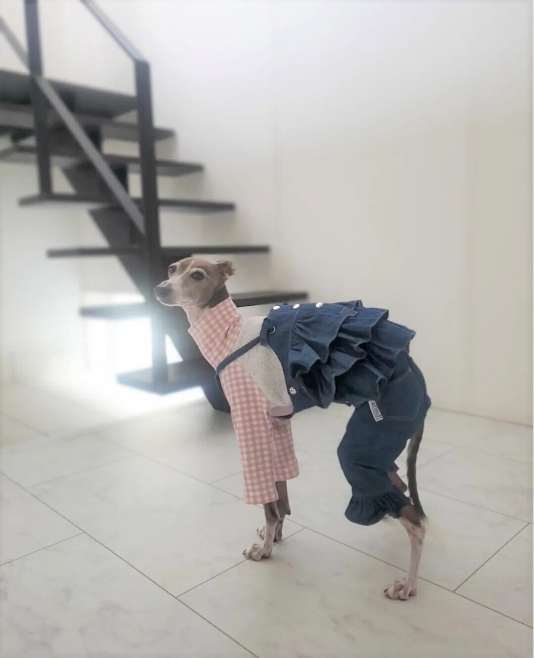 【ノーマル丈】ギンガムチェックとワッフルニットの長袖トップス