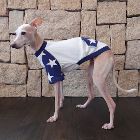 ネイビーとレッドのはっきりくっきりカラーに白抜きお星さまで元気いっぱいのイメージです。