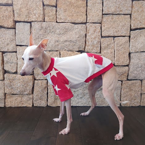 ネイビーとレッドのはっきりくっきりカラーに白抜きお星さまで元気いっぱいのイメージです。
