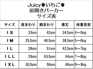 首:24cm、胴45cm、着丈39cm、体重5.6kg